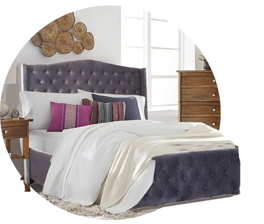 American Fabric Upholstered Bed - GreyTake your bed to the next level with our luxurious Jerick Upholstered Bed. High-end features, from the headboard to the footboard, will elevate your bedroom's style and comfort. Storage Bed. Modern design and a unique fabric make this bed unique. Upholstered in geo fabric...