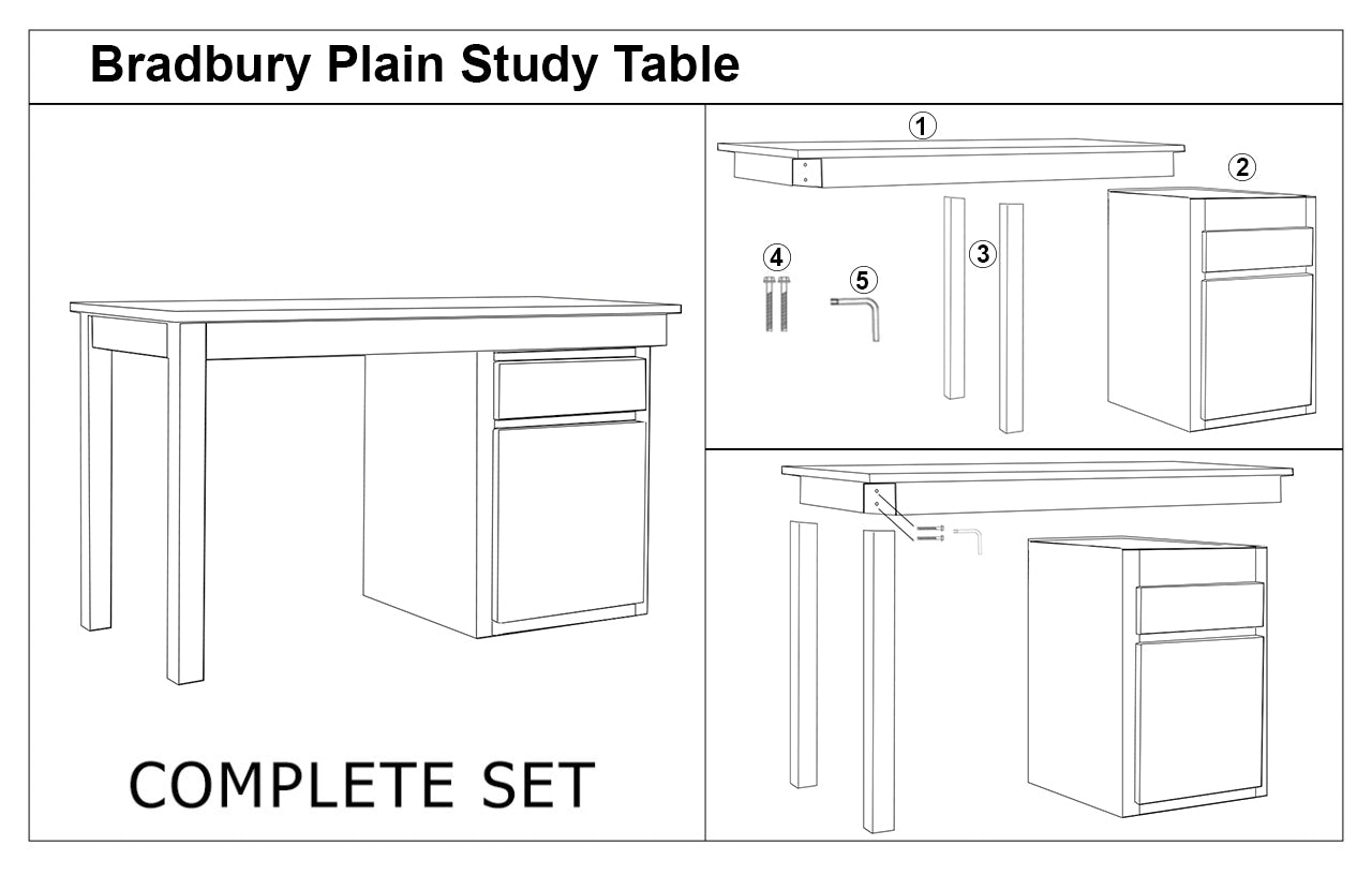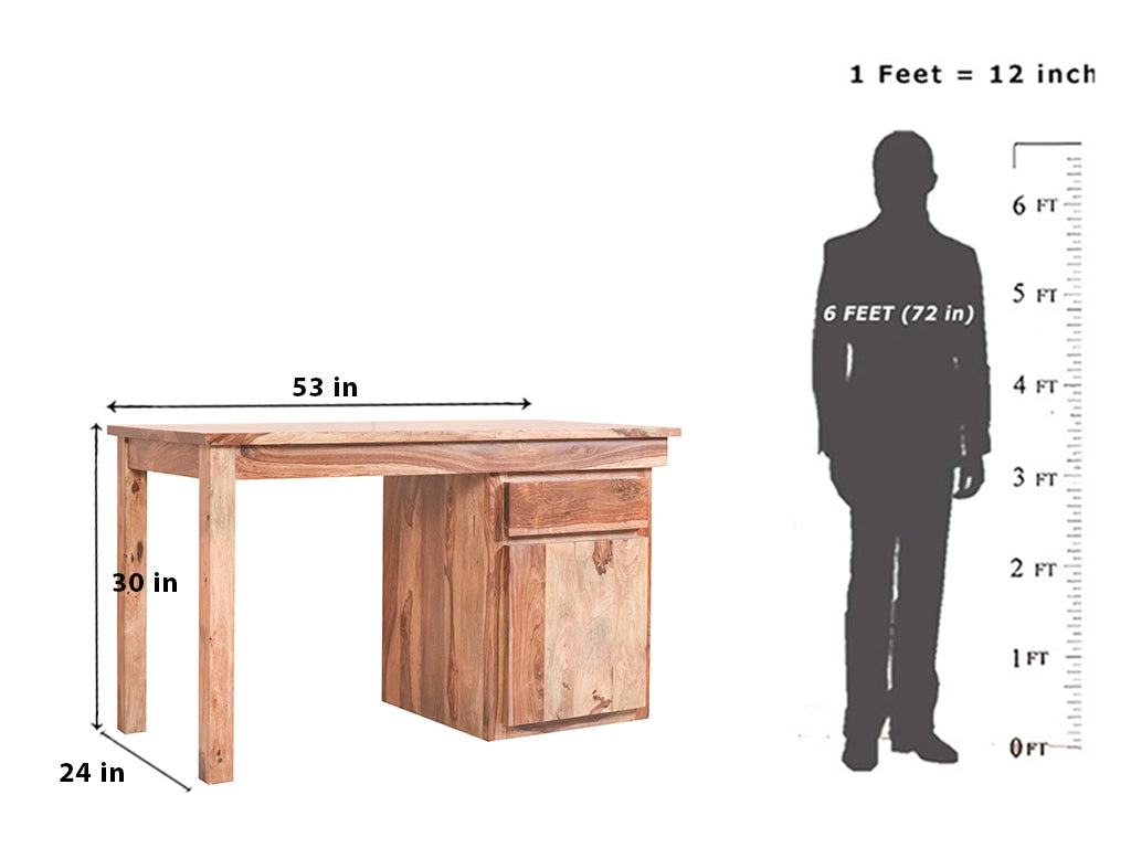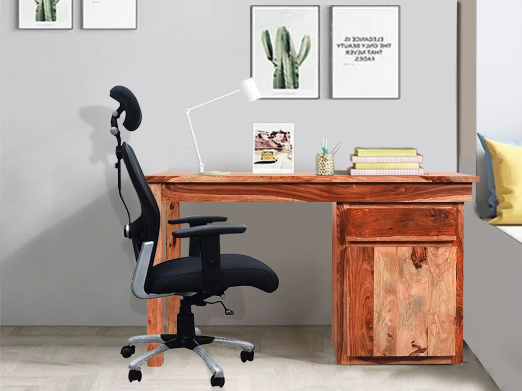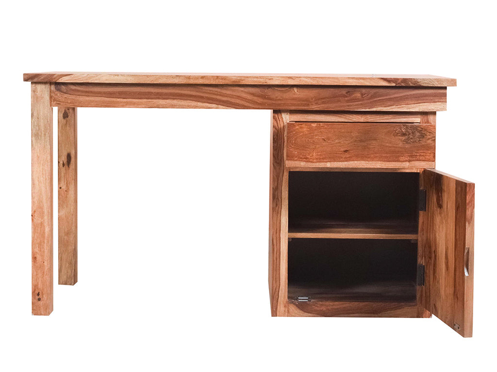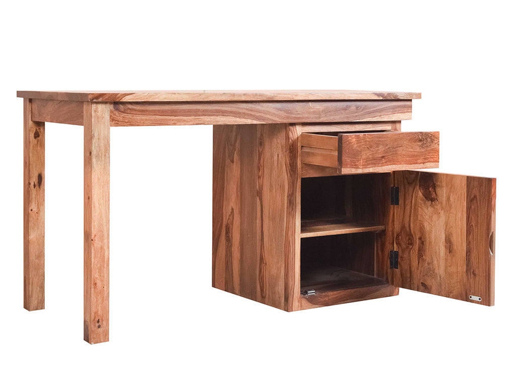 Sturdy solid wood study table with one drawer & one cabinet. Large surface and spacious storage spaces accommodate everything you need at your work station
