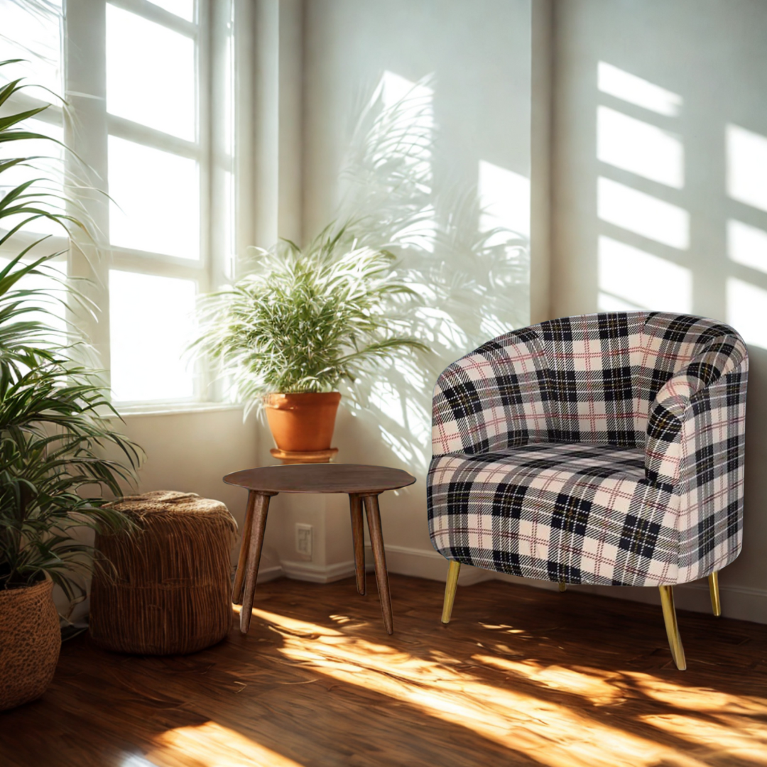 The Guelfo Lounge chair is a stylish and comfortable seating option that features a modern design and an abstract black and white check print is a bold and eye-catching design that adds a touch of sophistication and elegance to any space. It is the perfect addition to any contemporary living room, bedroom, or office space.